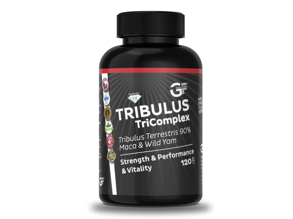 TRIBULUS TriComplex je kombinace tří přírodních extraktů v garantovaném poměru 3:1:1. Základ této vyvážené směsi tvoří Tribulus terrestris (Kotvičník zemní - nadzemní část) s obsahem 90% saponinů s přirozeným obsahem protodioscinu, dále peruanská Maca černá a Yam extrakt s deklarovaným obsahem 20% diosgeninu, který přispívá k optimální hladině aktivity hormonů v těle = udržuje anabolický efekt a stimuluje produkci vlastního DHEA (80 mg Diosgeninu v denní dávce).